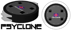 Psyclone is a Lightweight Horizontal Spinner, built by GF93 of Ice Cubed Robotics. A small cylindrical design running on four wheel drive for good stability, it was built predominantly on the ideals of attack and defence. With this in mind, its inner chassis was outfitted with very thick armour unlike many other robots of its type, which gave it great resistance even to weapons such as Axes and Crushers.